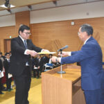 十歳証書授与では牧野結志さん (広戸小)、 大野結陽さん (大里小)、 鈴木茉絢さん (牧本小) に添田村長から手渡された。