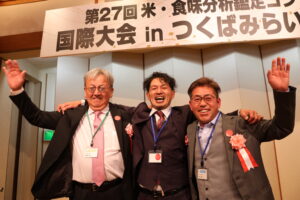 米・食味鑑定士協会、 つくばみらい市などでつくる実行委員会の主催。 国内や中国、 台湾、 韓国から計五千七十点の出品があった。 一、 二次審査を通過した上位四十二点が国際総合部門にノミネートされ、 六日の官能審査を経て、 米の食感や香りなどが評価された十八点が金賞を受けた。 同じく県内から神田忍さん (会津猪苗代カンダファーム) が金賞を受賞。