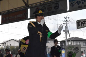 続いて星署長から板橋さんに委嘱状が手渡された後、 板橋さんの号令で白バイやパトカーが管内の警戒に出動した。