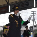 須賀川署などは八日、 市内広表のブルースタジアムで 「年末年始における事件事故防止特別警戒」 出動式が行われ、 牡丹観光大使で須賀川市出身の俳優・板橋駿谷さんが一日警察署長を務めた。