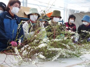JA夢みなみは十七日から、 西袋低温倉庫敷地内の開花ハウスで須賀川特産 「雪柳」 の選花作業を開始した。