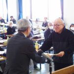 顕彰では新設単位クラブの季の郷シニアクラブ (渡部利弘会長) と会員増強の八クラブに賞状と顕彰金が手渡された。