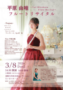 市民交流センターtetteの活用支援事業 「平原由唯 フルートリサイタル」 は三月八日午後二時半から同センターで開催される。