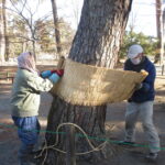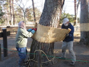 今回も昨年十一月に園内にある赤松約百八十本にこも巻きを実施した。